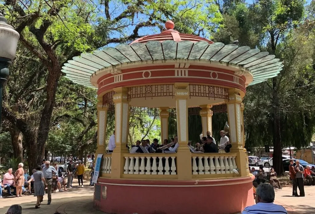 Desde 1932, com a inauguração do coreto da Praça Pedro Sanches, no coração histórico de Poços de Caldas, a banda apresenta shows semanais todo domingo, das 10h às 12h. Na sua trajetória, o grupo participou de eventos memoráveis, como a cerimônia de inauguração da Pedra Fundamental da Basílica de Nossa Senhora da Saúde, em 1938, e a recepção dos pracinhas que retornaram da Segunda Guerra Mundial, em 1945. Além disso, fez apresentações na Rádio Nacional do Rio de Janeiro, em 1958, e na TV Tupi de São Paulo, em 1968.