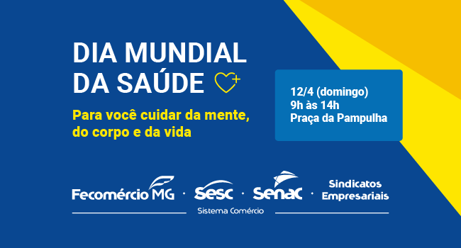 No próximo domingo, 12 de abril de 2026, o Sistema Fecomércio MG, através do Sesc em Minas, promove a 3ª edição do Dia Mundial da Saúde. O evento ocorrerá das 9h às 14h, na Praça Geralda Damata Pimentel, mais conhecida como Praça da Pampulha, em Belo Horizonte. Este ano, a saúde mental será o foco principal, destacando a importância do cuidado integral que envolve aspectos físicos, emocionais e sociais.
