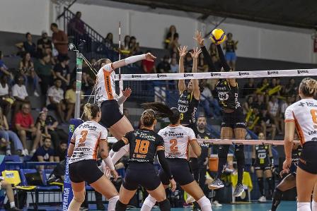 No primeiro set, Osasco enfrentou dificuldades, permanecendo atrás no placar a maior parte do tempo, enquanto o Praia Clube se esforçava para manter uma vantagem média de três pontos. O técnico Luizomar pediu um tempo técnico quando o marcador mostrava 12/16. A partir daí, Bianca fez um ataque decisivo e Larissa acelerou pelo meio, reduzindo a diferença para 14/20. A jogadora Maiara Basso, com uma jogada esperta, manteve viva a esperança dos osasquenses ao marcar o ponto 21/23, mas não conseguiu evitar a vitória do Praia, que fechou o set em 25/21.