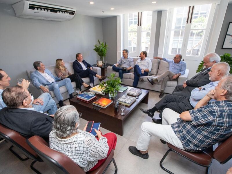 Acompanhado de Tecio Teles, presidente do Partido Novo em Pernambuco, Zema foi recebido por uma comitiva robusta, incluindo a vice-presidente da Folha, Mariana Costa, e diretores como Paulo Pugliesi e José Américo Lopes Góis. A equipe de jornalistas do jornal também estava presente, com figuras como a editora-chefe Leusa Santos e a editora de Política e Economia, Carol Brito.